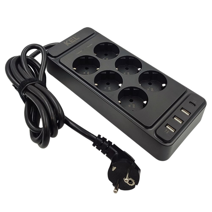 - 6 gniazd z uziemieniem (6GN Z/U) — stabilne i bezpieczne zasilanie dla sprzętu RTV, AGD, komputerów czy urządzeń mobilnych.